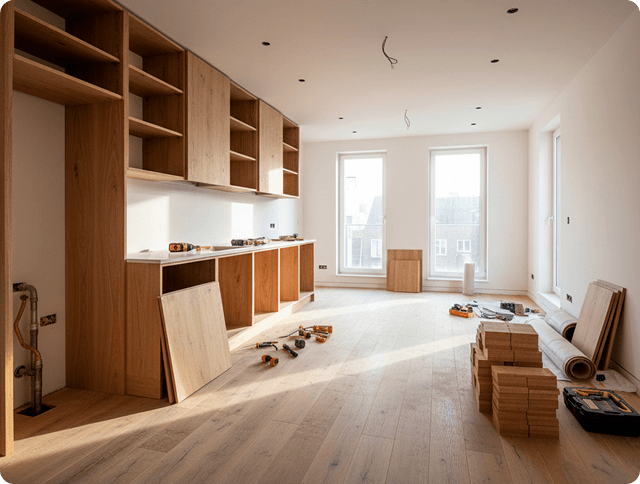 Reformas completas de viviendas y locales: planificación, coordinación de gremios, ejecución y entrega final. Gestionamos obras desde la propuesta inicial hasta el acabado.